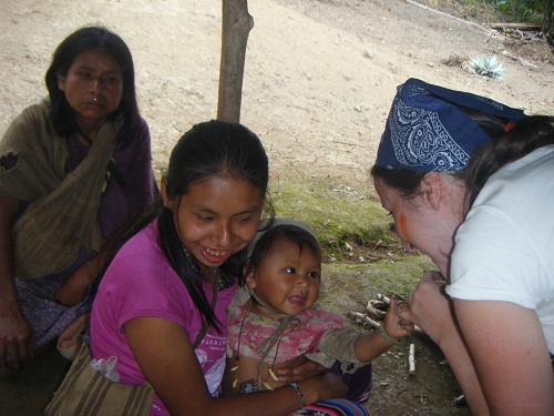 Tras dos días de convivencia con los paisanos de Matoriato, el jueves 9 pusimos rumbo a nuestro último destino: Kiraáteni. Pero justo cuando salíamos de la posta nos esperaba Evangelina con una tímida sonrisa y portando el desayuno en las manos ¡eran ni más ni menos que las 6 de la mañana! Nos sorprendió con un rico cafesito y yuca y platanitos fritos que estaban de muerte... ningún otro día emprendí el camino con tanta fuerza... ese café nos dio la vida!
