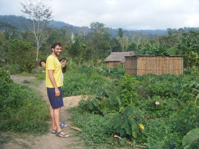 La llegada a Kiraáteni nos llevó 6 horas, pero se nos hizo más ligero que los días anteriores. Allí nuestro anfitrión fue Angelino, el jefe de la comunidad... aquí los jefes son puro servicio. Angelino era un hombre de mediana edad, hablar atropellado y risa alegre y desinhibida. En su cara de claras facciones indígenas destacaban sus pómulos hinchados, especialmente el pómulo derecho donde acumulaba una pasta verde grisácea elaborada a base de hojas de coca, ceniza y la raíz de una planta. También destacan sus dientes ennegrecidos, muchos ausentes, otros dejaban al descubierto los restos de la pasta de coca que mascaba incansablemente. Angelino era pura acción, a penas paró un momento desde que llegamos, nos preparó la comida todos los días y nos cazó un siguairo (rata enorme) de sabrosísima carne como homenaje. Se desvivía por hacernos sentir a gusto.