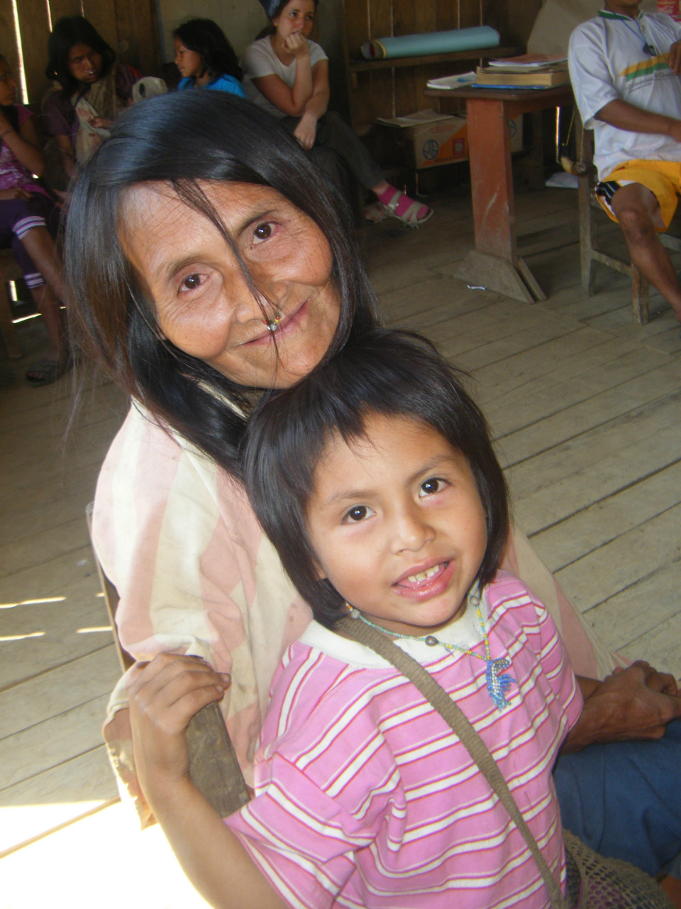 Evangelina fue otro de los ángeles caídos del cielo, que hacía honor a su nombre: era EVANGELIO VIVO. Una abuelita muy entrañable, flaquita, de pómulos marcados y bellas arrugas que dibujaban una linda sonrisa en su rostro. Evangelina ejerce de papá y mamá de sus dos nietos: Iván y Milagros, pues sus padres les abandonaron y ella se hizo cargo de ellos. Sus nietos son tan cariñosos y serviciales como la abuelita. Tanto esmero puso Evangelina por cuidarnos, que fue hasta el río Yavero a pescarnos un rico pescadito con un humildes hilo y un trocito de yuca como cebo. Con él nos hizo un riquísimo caldo que nos supo a gloria, no sé si por lo fresco que estaba el pescado o por el amor que puso en cocinarlo.